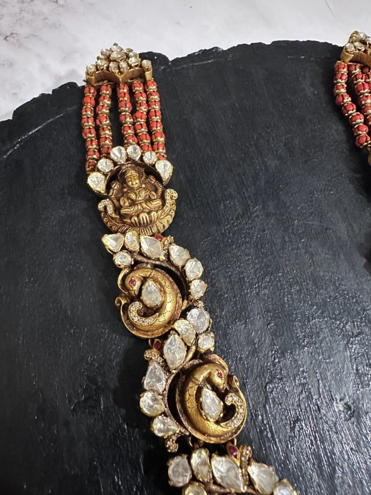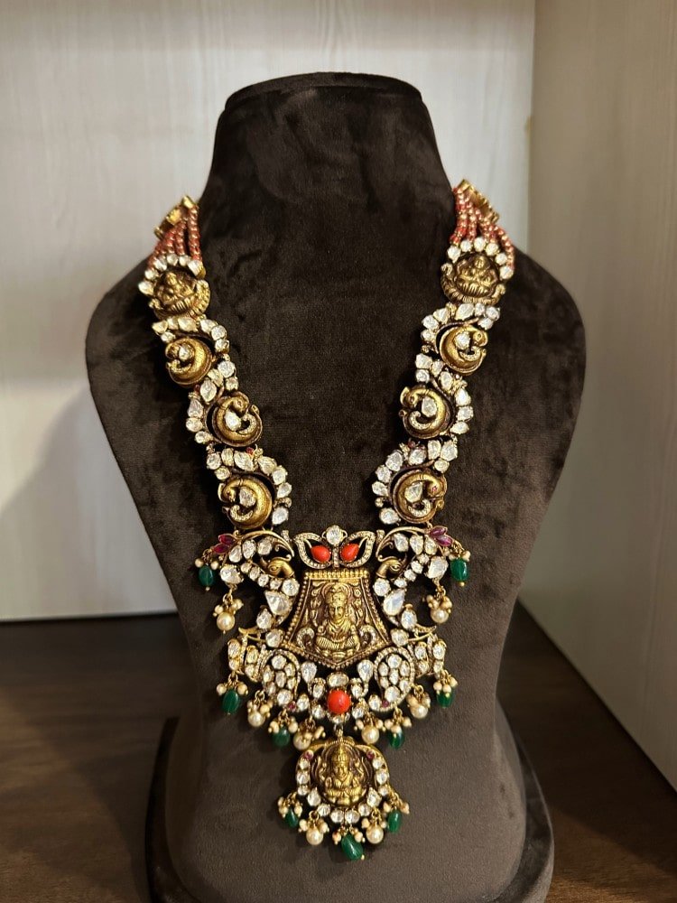 Be the first to review “Lakshmi Peacock Moissanite Nakshi Haram” Cancel reply