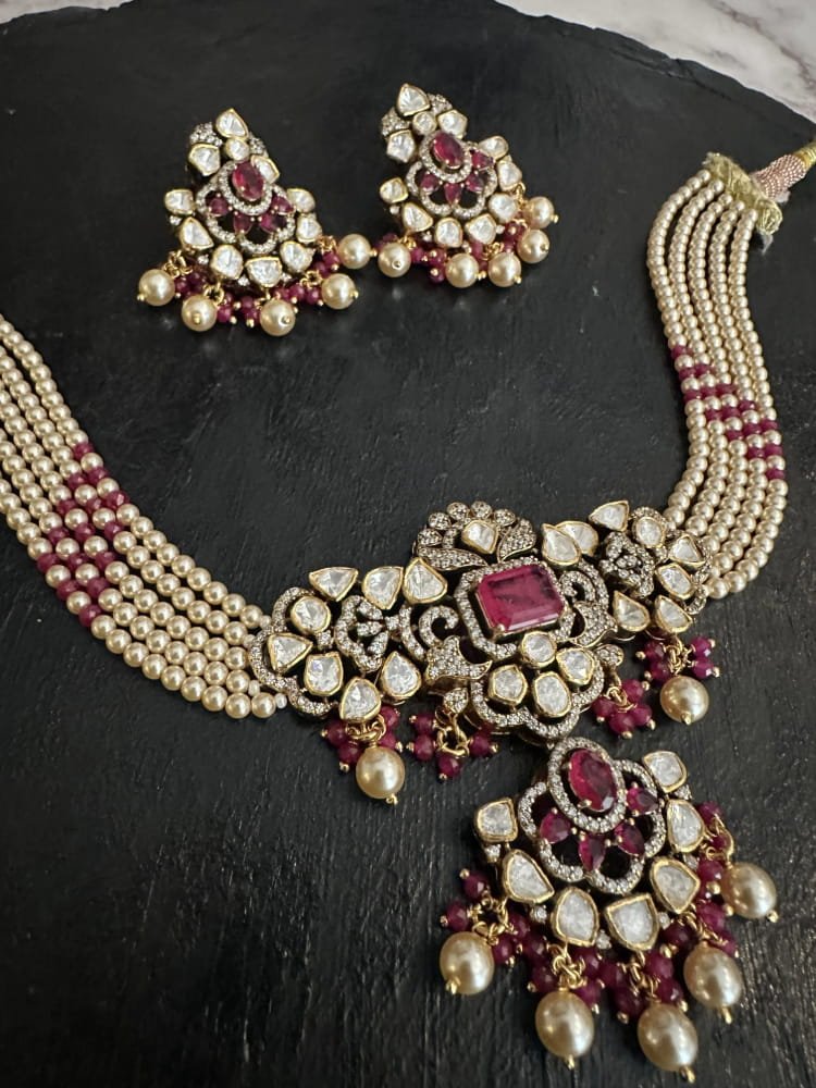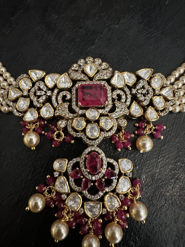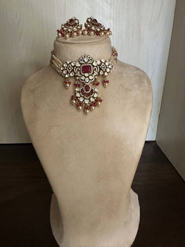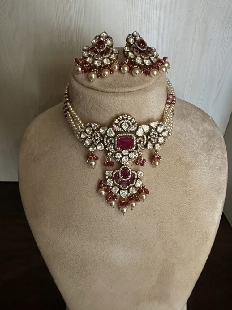 Ruby polki pearl choker set